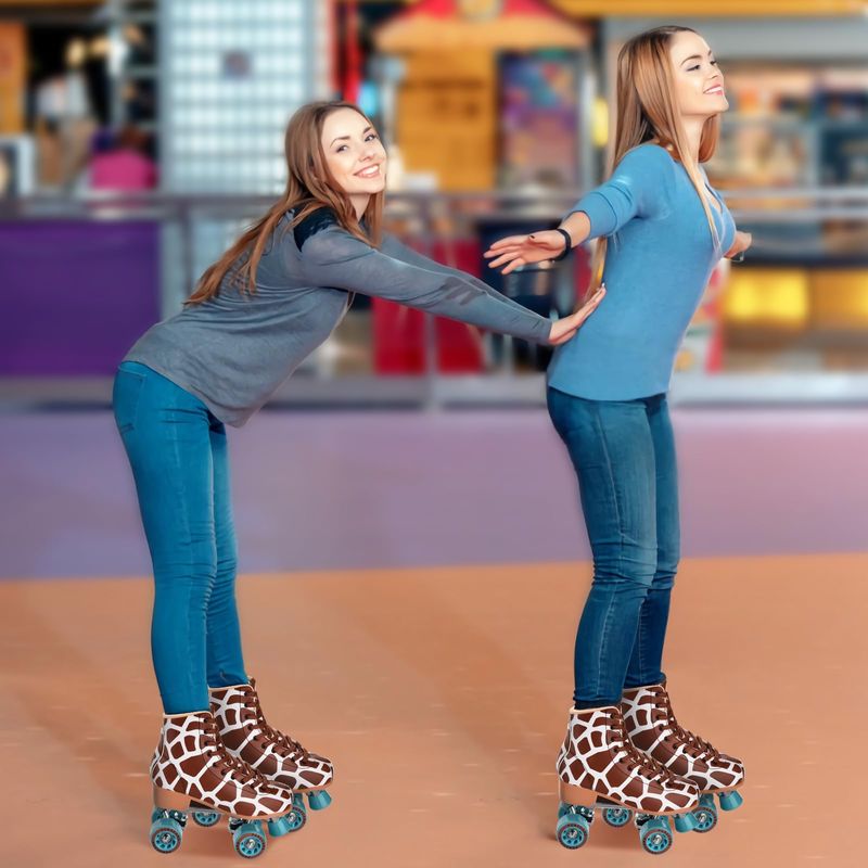 Patines de ruedas para mujer, doble fila, 4 ruedas, brillantes, para hombres, de piel sintética,