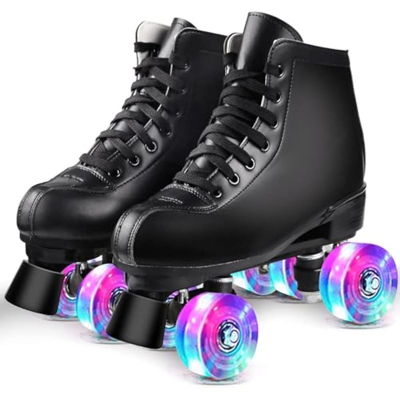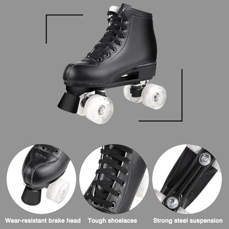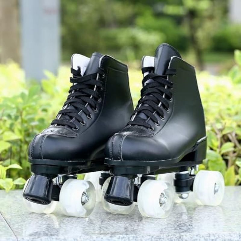 Patines de ruedas para mujer, doble fila, 4 ruedas, brillantes, para hombres, de piel sintética,