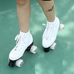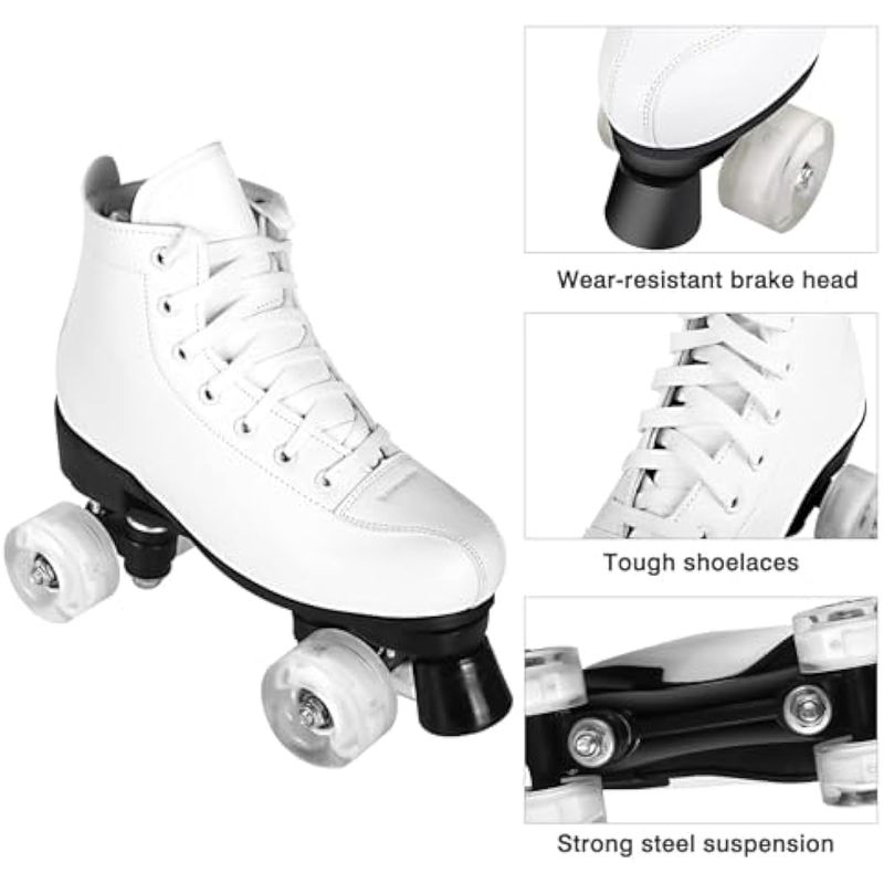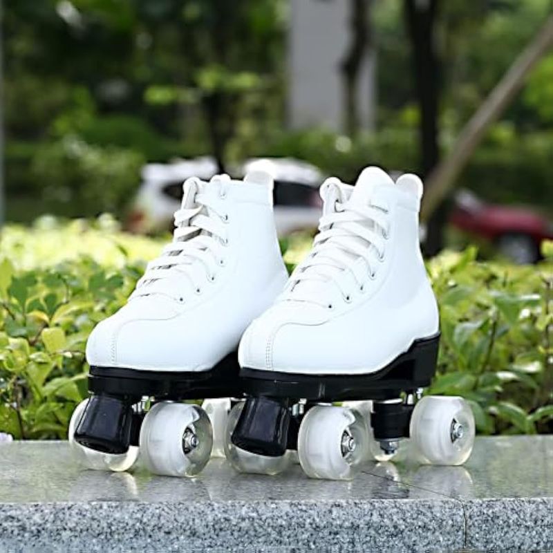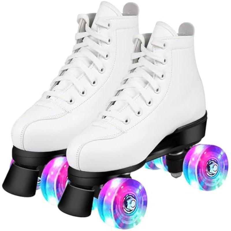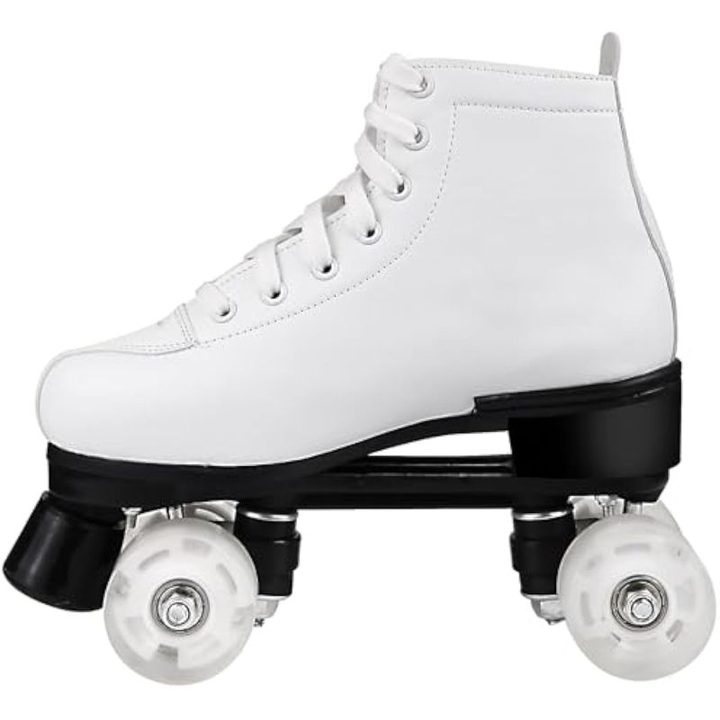 Patines de ruedas para mujer, doble fila, 4 ruedas, brillantes, para hombres, de piel sintética,