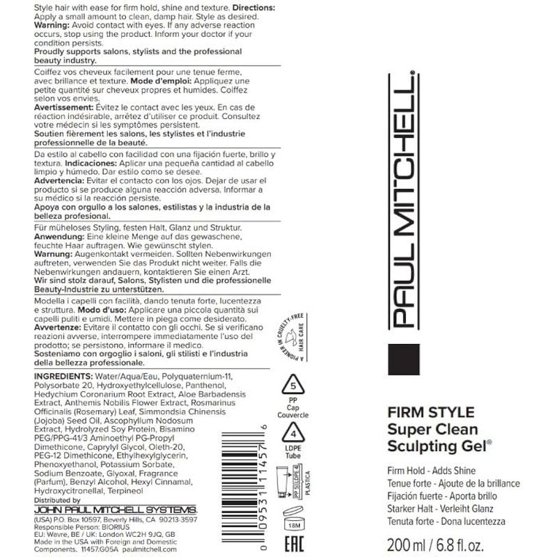 BELLEZA Y SALUDBELLEZA Y CUIDADO CORPORALCUIDADO CAPILARPaul Mitchell Gel escultor súper limpio, fijación firme, gel para el cabello con acabado de alto