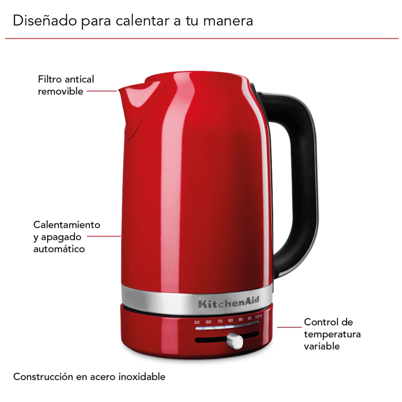 Pava Eléctrica KitchenAid 1,7 L con Control de Temperatura – Precisión, Capacidad y Estilo