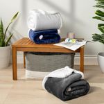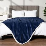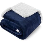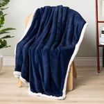 HOGARBLANQUERIACUBRECAMAPAVILIA - Manta de vellón, sherpa, felpa, azul marino, suave, cálida, mullida, azul oscuro para