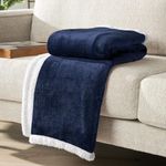 PAVILIA - Manta de vellón, sherpa, felpa, azul marino, suave, cálida, mullida, azul oscuro para