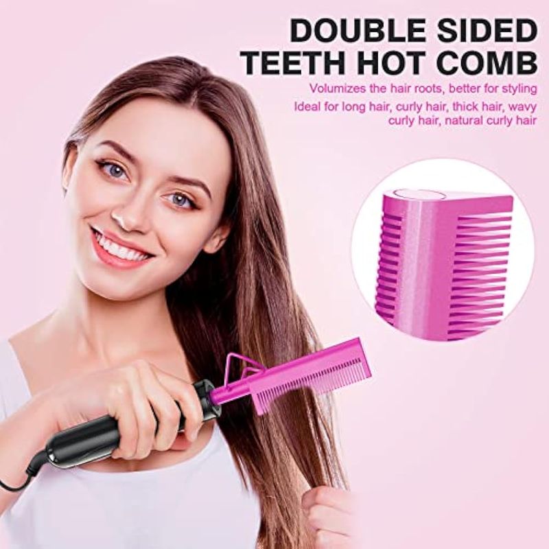 ??Peine térmico del dispositivo de protección?: el peine de prensado térmico tiene un soporte plegable para evitar quemar la mesa. Es seguro para usted hacer para el peinado del cabello o la barba.