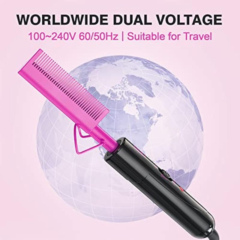 ??Ligero y fácil de usar?: este peine caliente portátil es lo suficientemente pequeño como para empacar, pero hace un gran trabajo al alisar tu cabello. El doble voltaje de 100 V-240 V y el cable giratorio de 360 grados garantizan que puedas usarlo en cualquier lugar en cualquier ángulo, con una experiencia suave en todo momento.