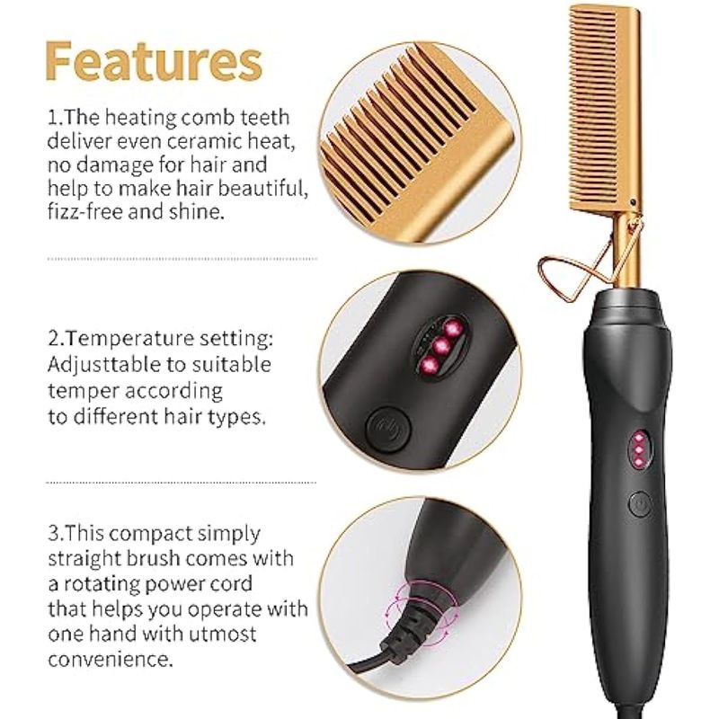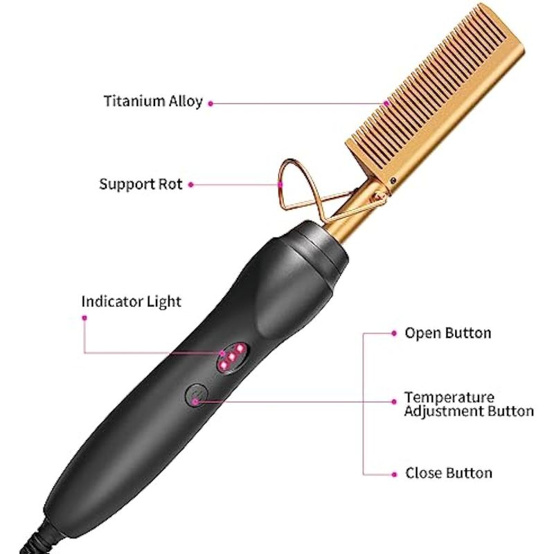 Peine caliente para alisar el cabello, peine eléctrico de cerámica, rizador para cabello negro