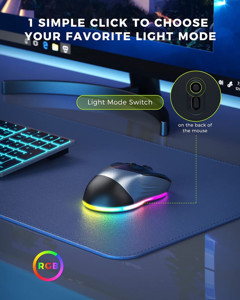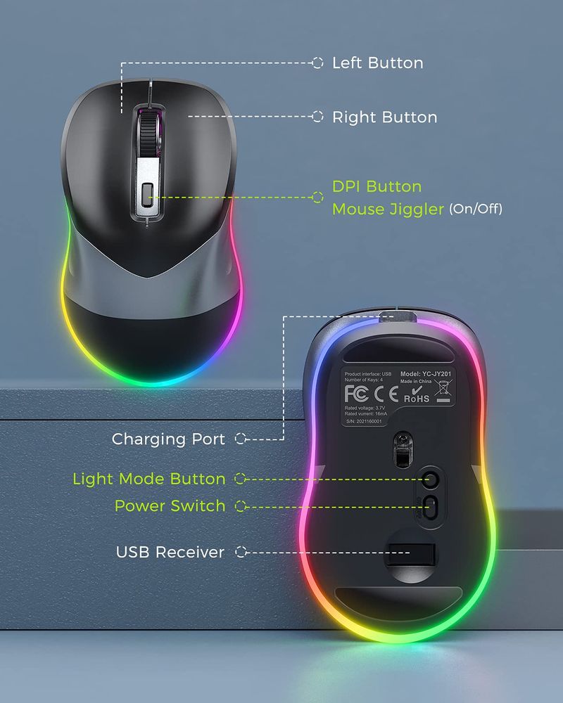 PEIOUS Ratón inalámbrico, mouse Jiggler para laptop, mouse LED recargable para computadora, mouse