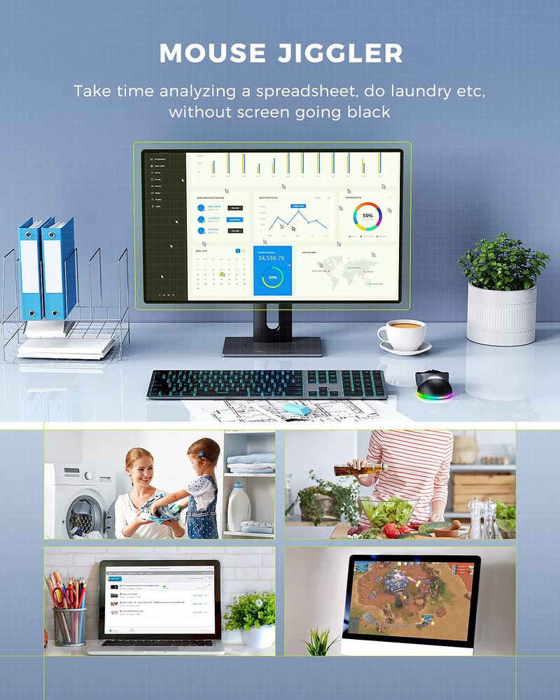 INFORMÁTICAACCESORIOS DE INFORMATICAMOUSEPEIOUS Ratón inalámbrico, mouse Jiggler para laptop, mouse LED recargable para computadora, mouse