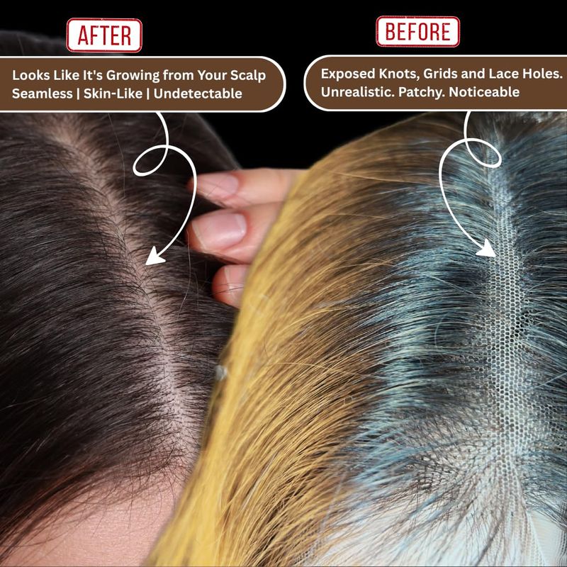 Peluca de encaje con nudos, agujeros y rejilla, corrector de rejilla, efecto cuero cabelludo real, a