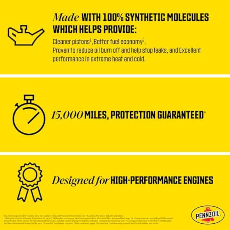 PENNZOIL PLATINUM HIGH MILEAGE FULL SYNTHETIC 5W-30 ACEITE TOTALMENTE SINTéTICO PARA MOTOR DE GASOLINA, 5 QT
