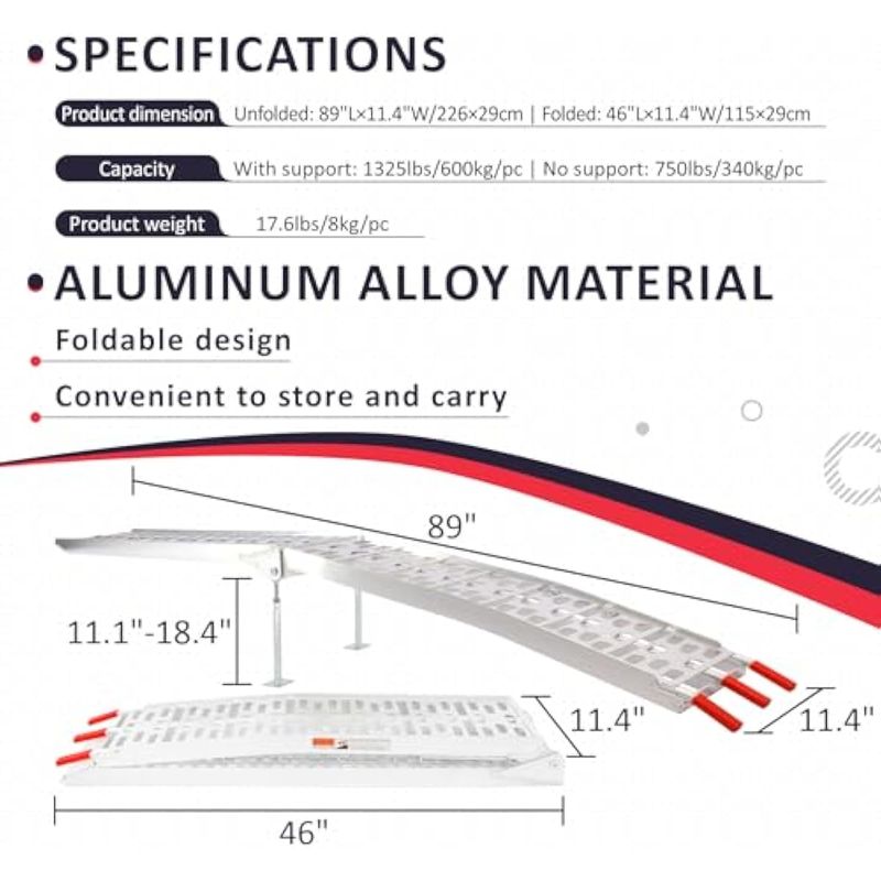 RODADOSMOTOSPENSUN Rampas de carga para camión con patas de soporte, rampas plegables de aluminio de 7.5 pies