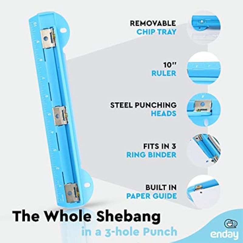 Perforadora portátil de 3 agujeros azul para carpeta de 3 anillas, capacidad de 3 hojas, bandeja de