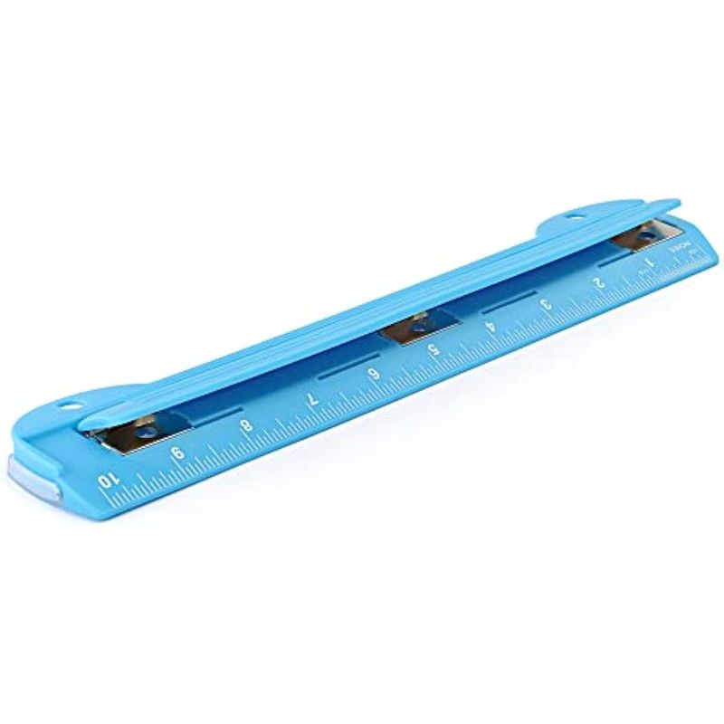 ARTE, LIBRERÍA Y OFICINAMANUALIDADESPerforadora portátil de 3 agujeros azul para carpeta de 3 anillas, capacidad de 3 hojas, bandeja de