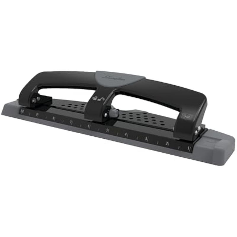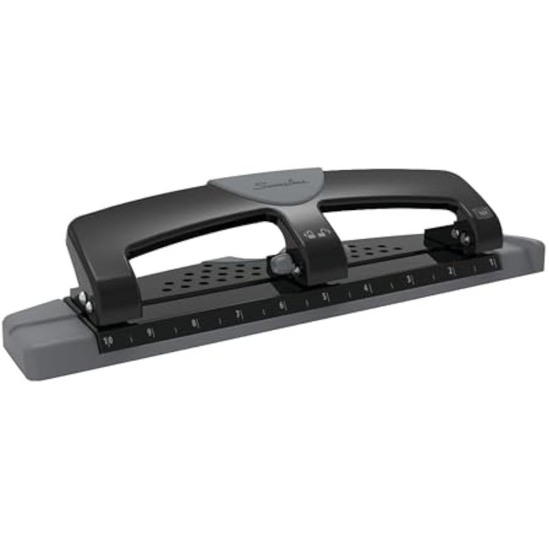 Perforadora SmartTouch de Swingline, de 3 orificios, negro, gris