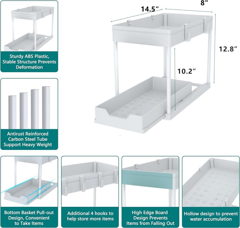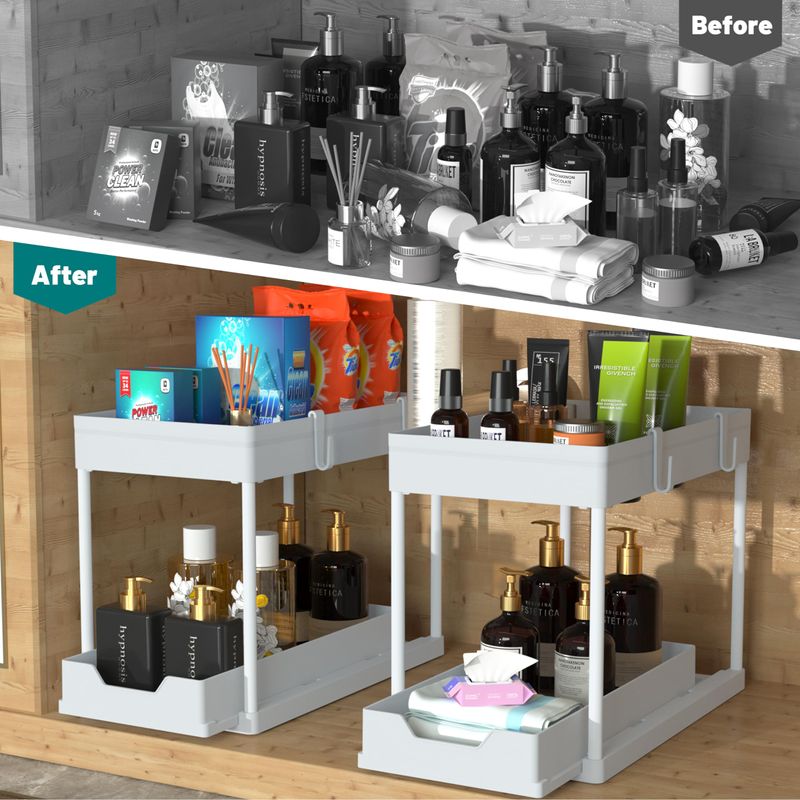 HOGARBAZARUTENSILIOS DE COCINApetisal 2 Tier Clear Organizer with Dividers, sliding out storage container, Bathroom Cabinet