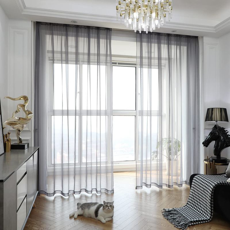 PHILEASY - Cortinas traslúcidas de color blanco para la ventana, 84 pulgadas de largo, 2 paneles,
