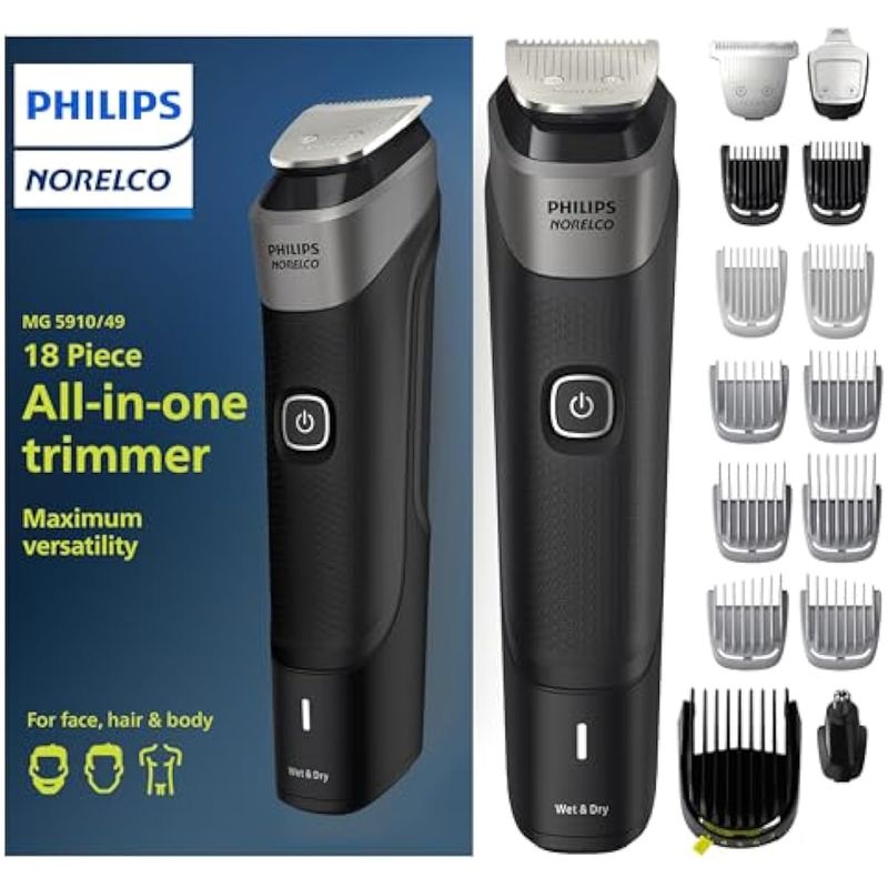 Philips Norelco Multigroom Series 5000 18 piezas, recortadora de barba para cara, cabello, cuerpo e