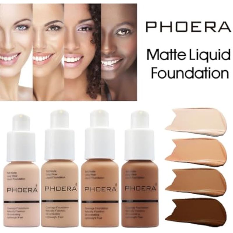 PHOERA - Base líquida mate suave impecable 24 horas con control de aceite corrector de maquillaje (1