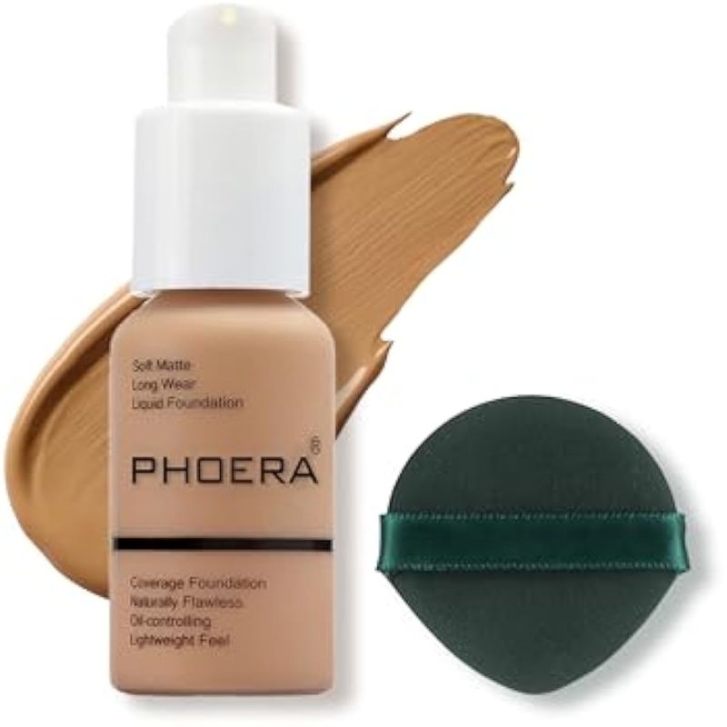 PHOERA Base de maquillaje naturalmente líquida, cobertura completa, corrector de control de aceite