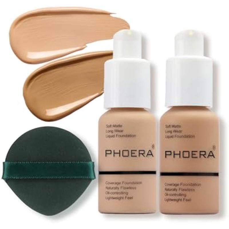 PHOERA Maquillaje de base, base líquida de control de aceite mate suave impecable, cobertura