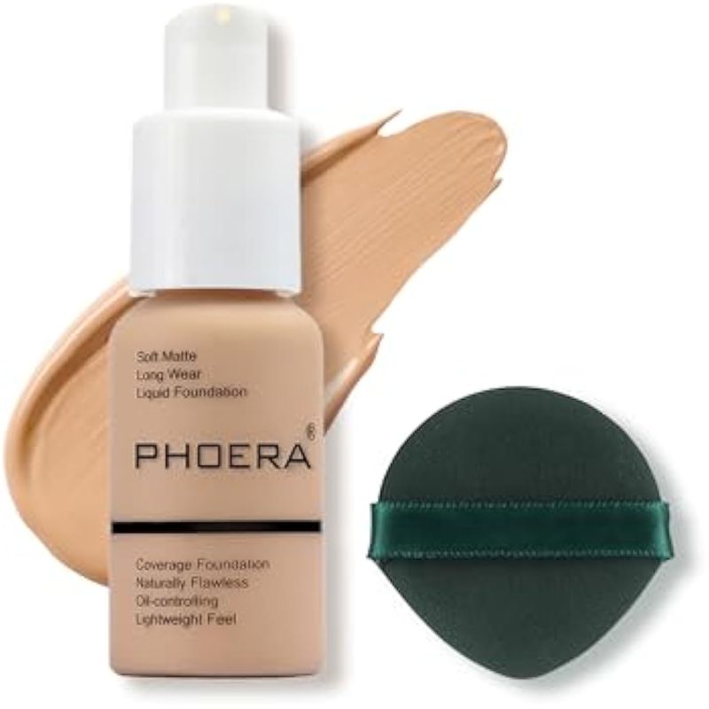 PHOERA Maquillaje de base, base líquida de control de aceite mate suave impecable, cobertura