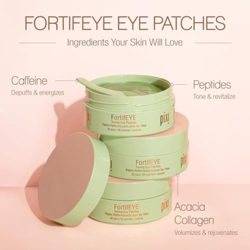 PIXI FORTIFEYE - PARCHES REAFIRMANTES DE HIDROGEL PARA DEBAJO DE LOS OJOS, PARCHES DE COLáGENO PARA DEBAJO DE LOS OJOS, ENERGIZAN Y TONIFICAN EL áREA DE LOS OJOS, 30 PARES/60 PARCHES