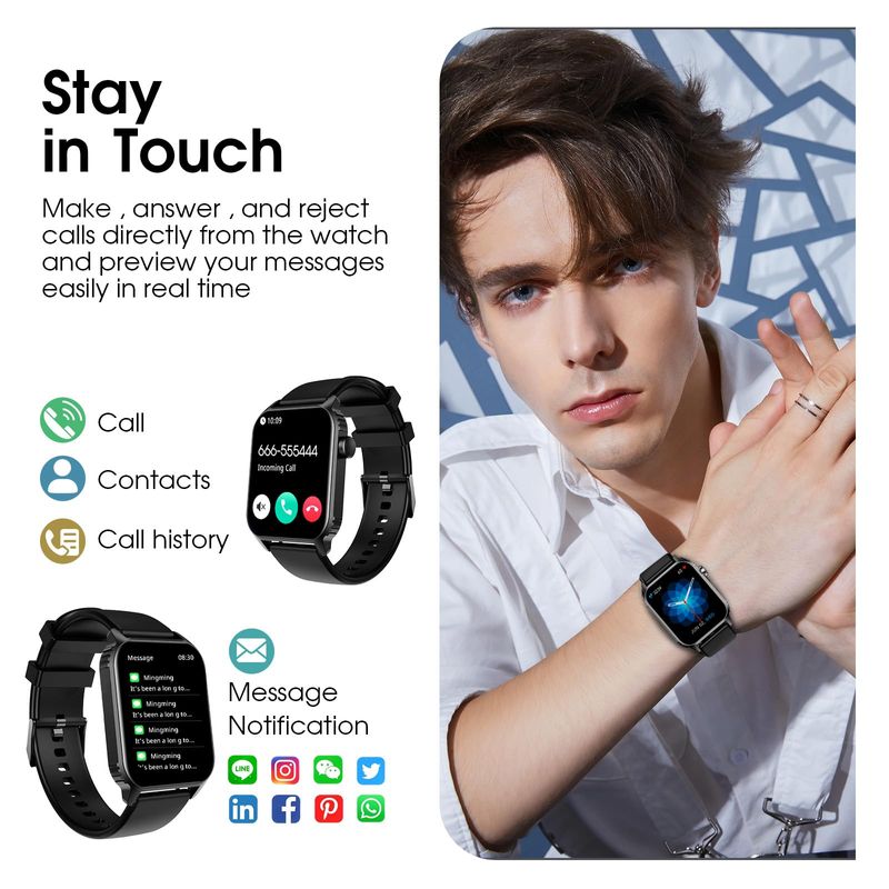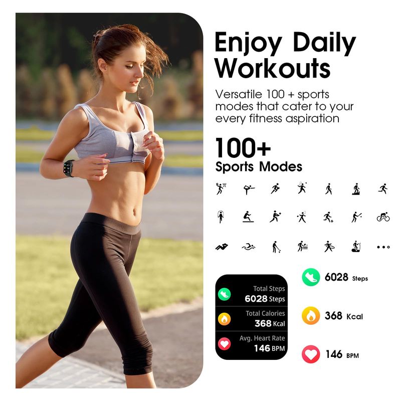 PJYUBVOR 1.90'' with Smart Watch(Answer/Make Calls),Smart Fitness Tracker Watches for Android/iOS