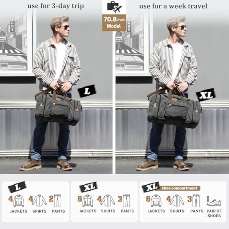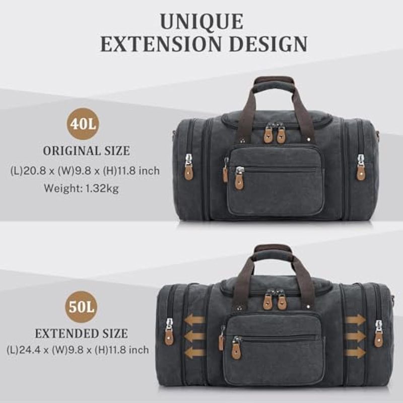 ?Diseño ampliable? 20.8 x 9.8 x 11.8 pulgadas. Tire hacia abajo de 2 cremalleras laterales para extender la bolsa a 24.4 pulgadas de largo. Esta bolsa cumple con las restricciones de equipaje de la aerolínea, puedes llevarla en vuelo sin preocupaciones.