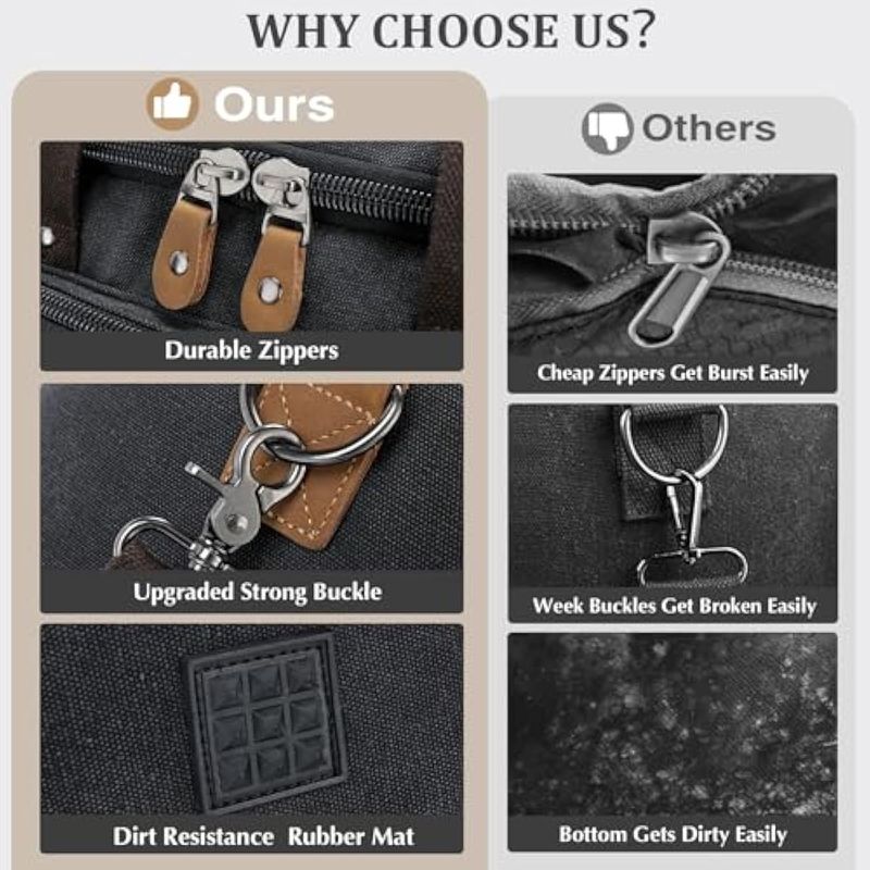 ?Material? 100 nuevo y hecho de lona de alta densidad de 16 onzas, 100 algodón y hardware de tonalidad bronce clásico, forro de nailon suave, cremalleras grandes suaves.