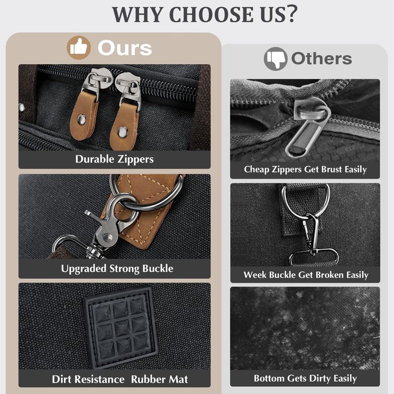 ?Material? 100 nuevo y hecho de lona de alta densidad de 16 onzas, 100 algodón y hardware de tonalidad bronce clásico, forro de nailon suave, cremalleras grandes suaves.