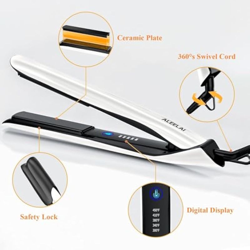 Alisado eficiente con placas flotantes 3D: el alisador de cabello ALEELAI cuenta con placas flotantes 3D para un estilo suave y sin enganches. Esta plancha plana se desliza sin esfuerzo a través del cabello, proporcionando una distribución uniforme del calor para un cabello liso y liso en minutos.
