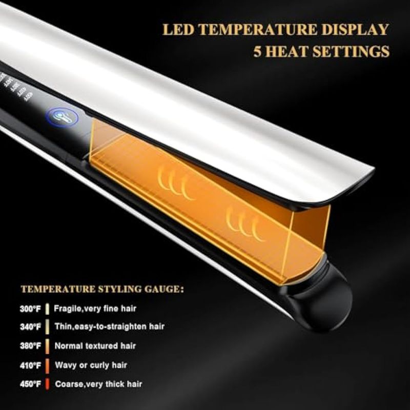 PLANCHA DE CABELLO 2 EN 1 PLANCHA DE CABELLO CON PLACAS FLOTANTES 3D, CONTROL INTELIGENTE DE TEMPERATURA, CALEFACCIóN MCH, VOLTAJE DUAL 100V-240V Y CABLE EXTRA LARGO GIRATORIO DE 360°