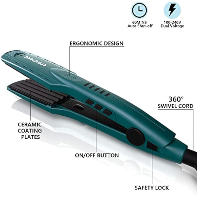 Diseño de seguridad y fácil de usar: el engarzador lleva un cable giratorio sin enredos para evitar el enrollamiento. El cable de 8 pies para flexibilidad de estilo. Separe el cabello en secciones manejables, asegurándose de que cada sección sea más pequeña que la placa frontal del alisador, lo que permite que el calor se distribuya uniformemente a todas las hebras.