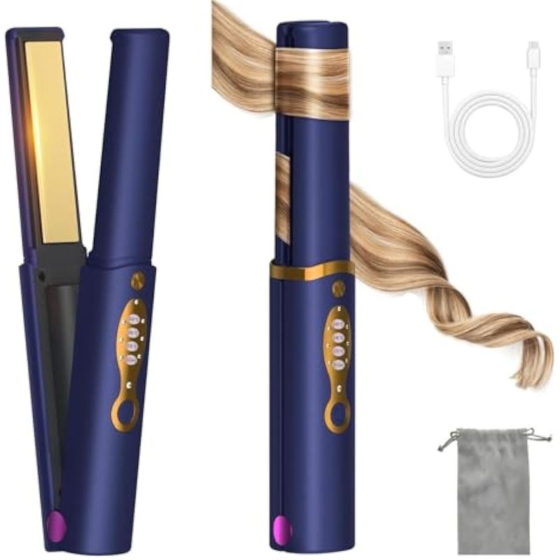 [Enderezadora y rizadora 2 en 1] Esta mini plancha plana inalámbrica con batería opterada está diseñada en funcionalidad y comodidad que ofrece capacidades de alisado y rizado. Es adecuado para la mayoría de tipos de cabello, te permite peinar tu cabello en cualquier momento, perfecto para viajes, sesiones de fiesta o retoques sobre la marcha.
