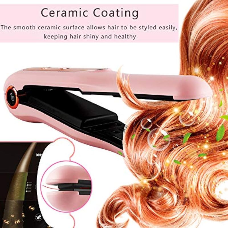 Plancha de pelo profesional 2 en 1 y rizador de pelo recargable por USB, función de apagado y
