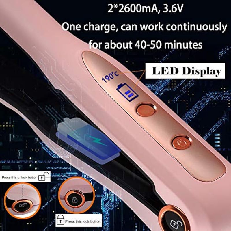 BELLEZA Y SALUDCUIDADO PERSONALPLANCHITASPlancha de pelo profesional 2 en 1 y rizador de pelo recargable por USB, función de apagado y