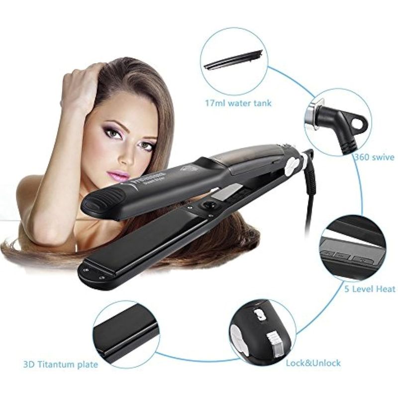 Tecnología de vapor: diseñado con nueva función de vapor, 5 rejillas de ventilación de vapor de acondicionamiento en la placa de calefacción emiten vapor caliente para añadir humedad y brillo al cabello, haciendo que tu cabello sea más saludable y reduciendo el daño del cabello por el cuidado del vapor.