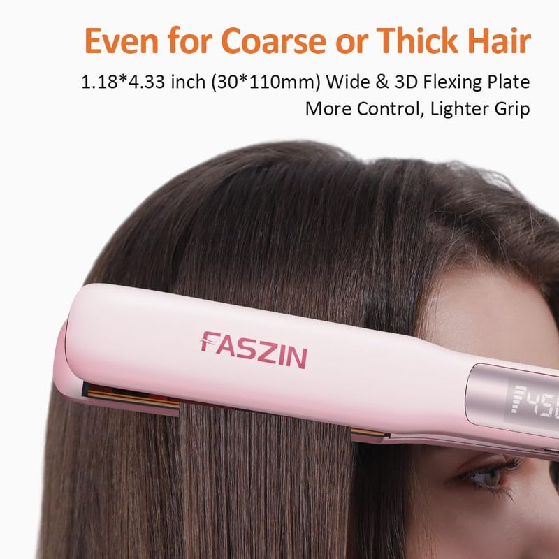 Plancha de pelo profesional, placa de titanio iónico de 1.18 pulgadas, plancha plana de