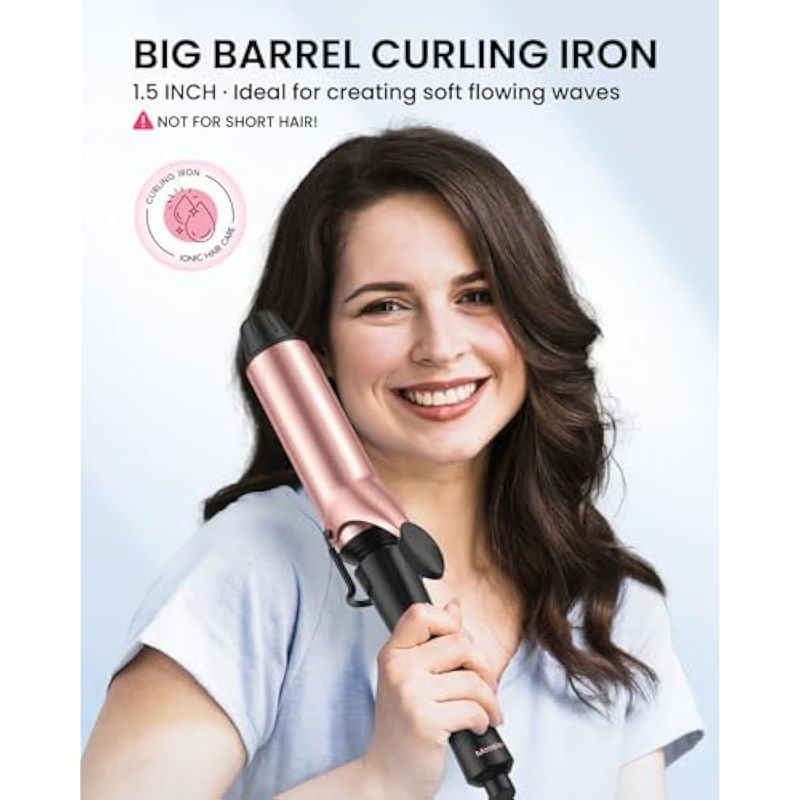 PLANCHA RIZADORA, BARRIL GRANDE DE 1.5 PULGADAS PARA CABELLO LARGO, RIZADOR GRANDE DE CERáMICA PARA RIZOS GRANDES, CONTROL DE TEMPERATURA AJUSTABLE, ABRAZADERA MEJORADA, DOBLE VOLTAJE, CABLE