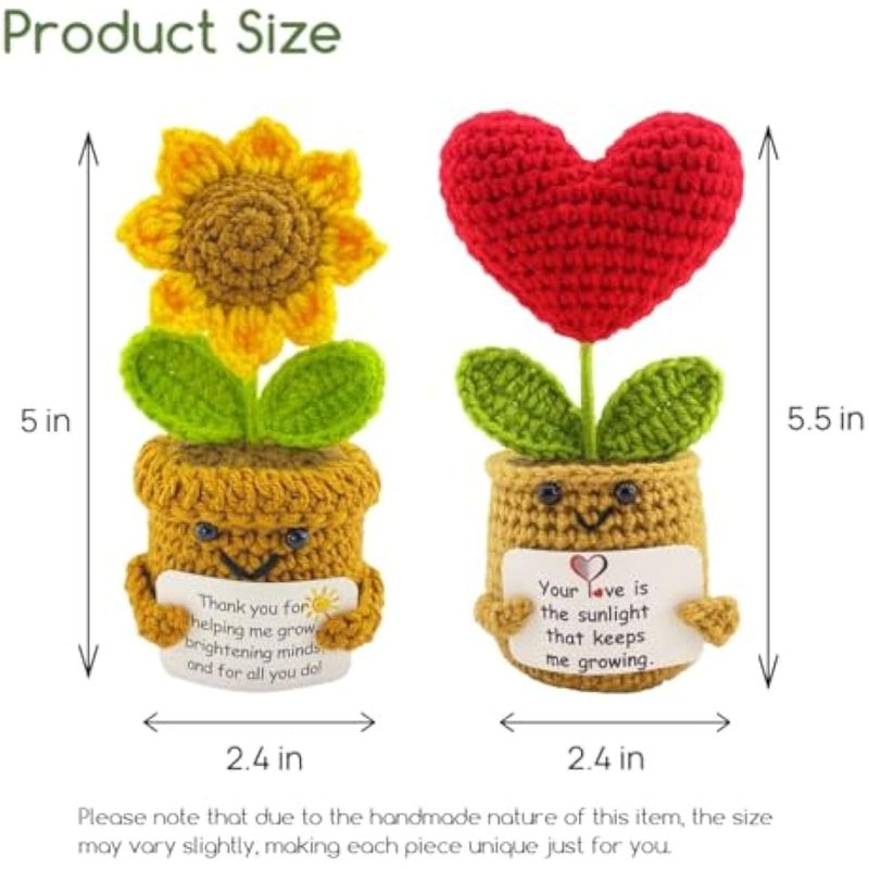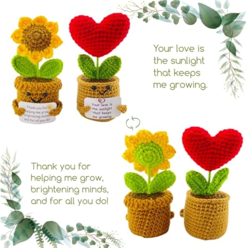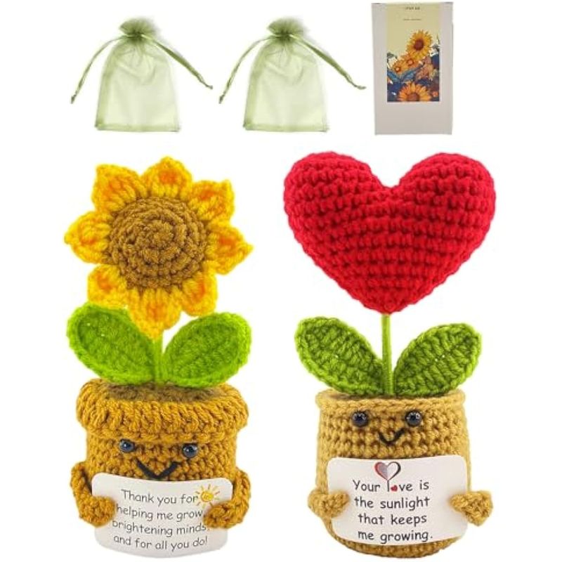 Plantas de ganchillo hechas a mano, 2 piezas, regalo de agradecimiento con tarjeta, regalo de