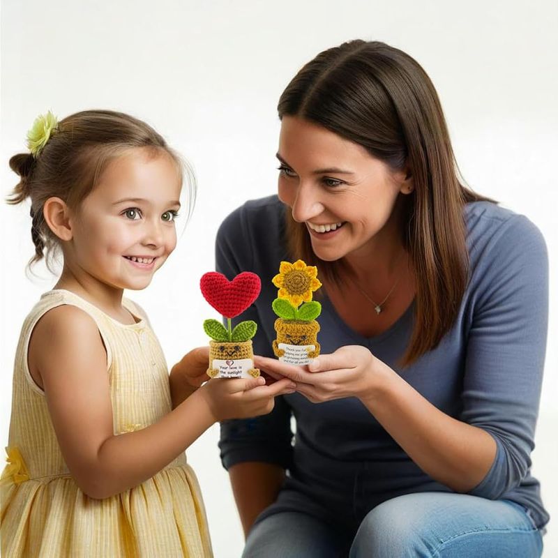 ARTE, LIBRERÍA Y OFICINAMERCERIAPlantas de ganchillo hechas a mano, 2 piezas, regalo de agradecimiento con tarjeta, regalo de