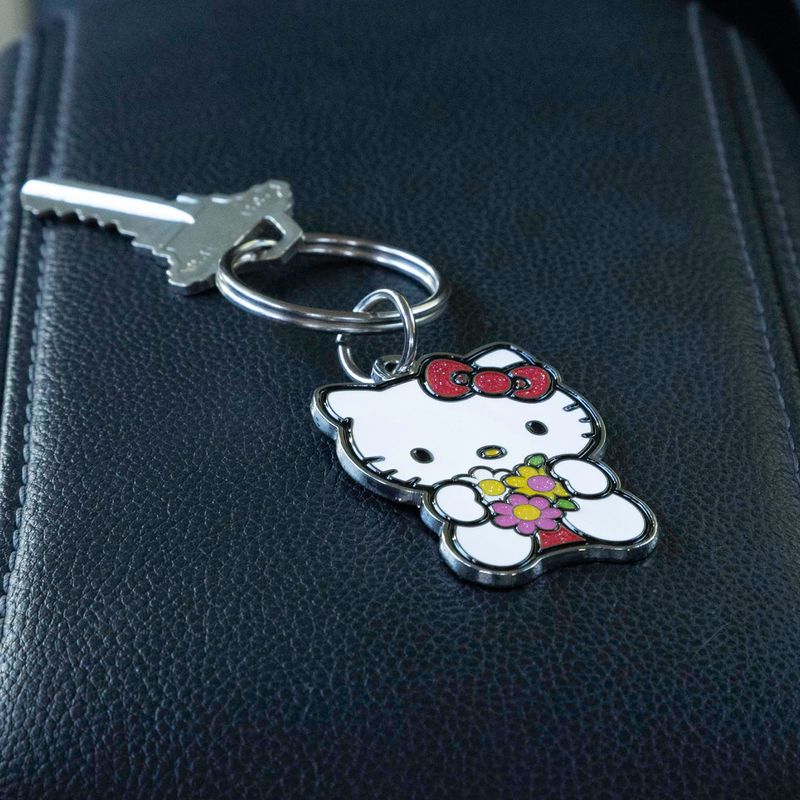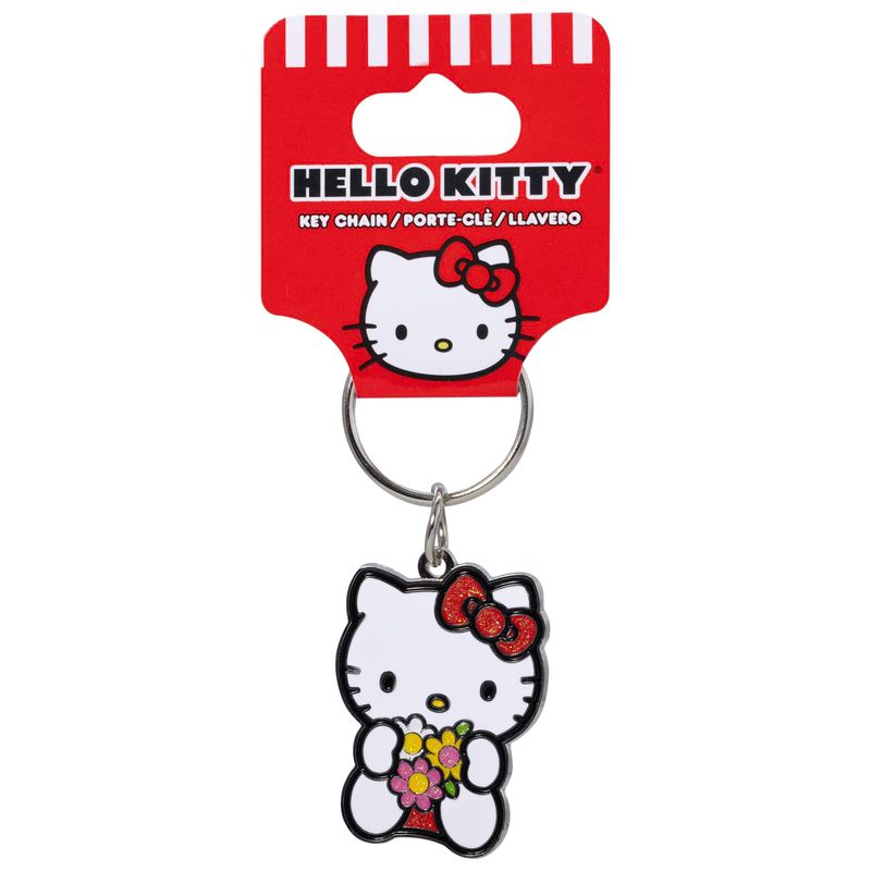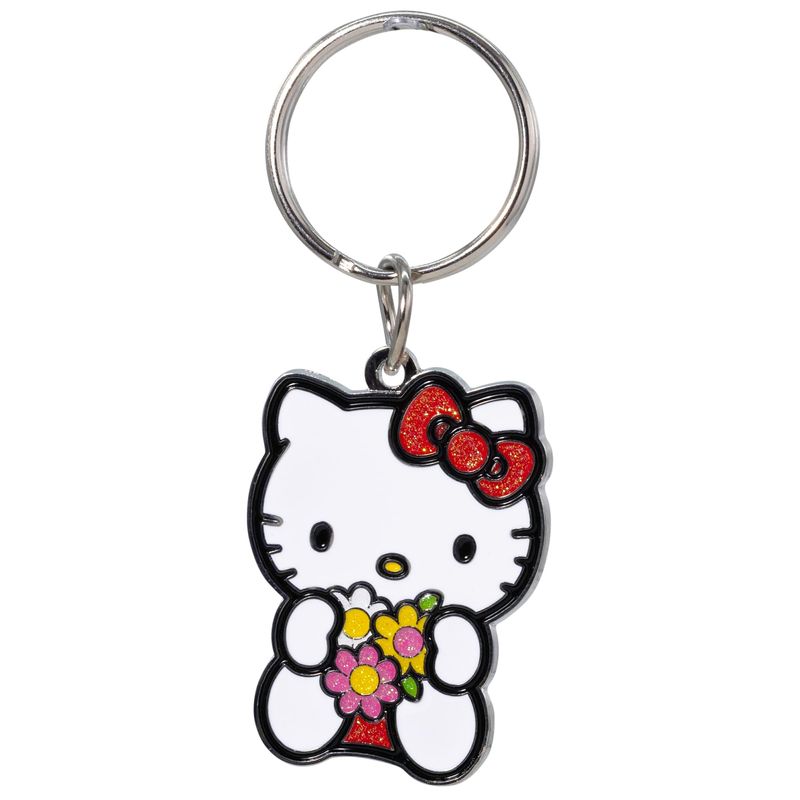 RODADOSHERRAMIENTAS PARA AUTOPlasticolor 004597R01 Hello Kitty Glitter Bow and Flowers Esmalte Metal Llavero, Blanco, Talla única