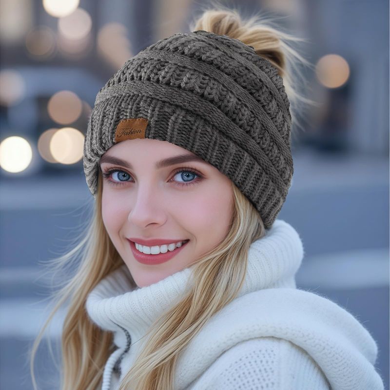 Pleneal Beanie Hat for Women Slouchy Hats, Winter Warm Chunky Soft Warm Cable Skull Cap Beanies - Pardo