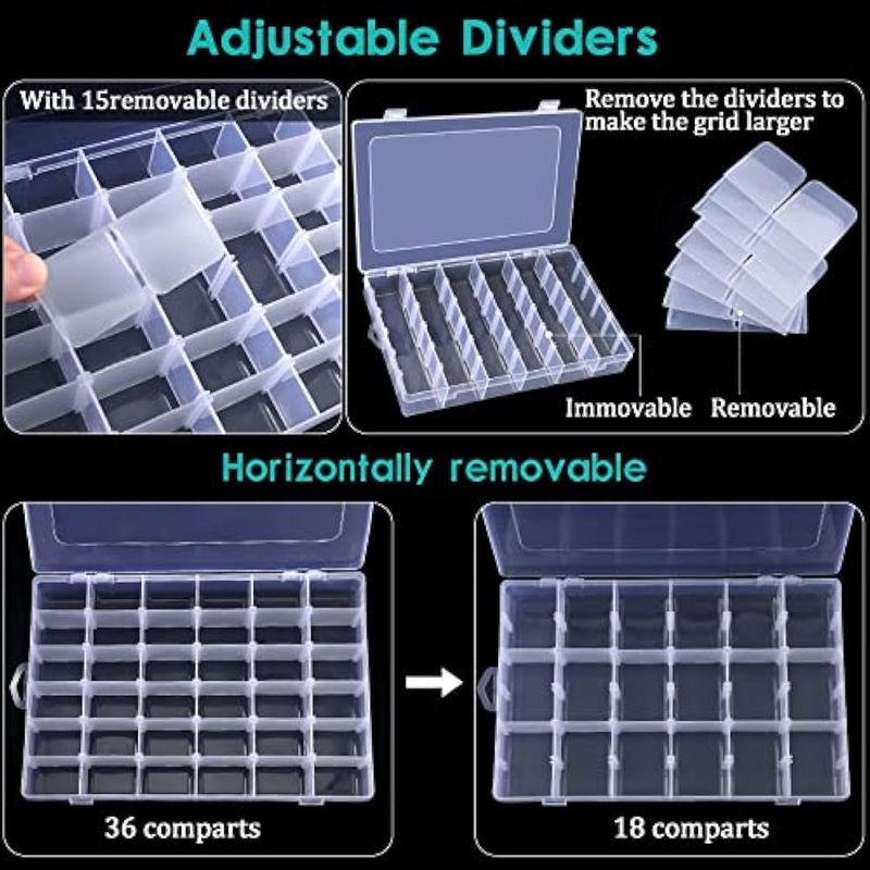 Almacenamiento organizado y fácil de transportar: el organizador de cuentas con cerraduras de dos hebillas es fácil de abrir y cerrar, con 36 rejillas, organizado y fácil de encontrar. Caja organizadora compacta y cómoda de llevar tanto en interiores como en exteriores.