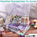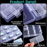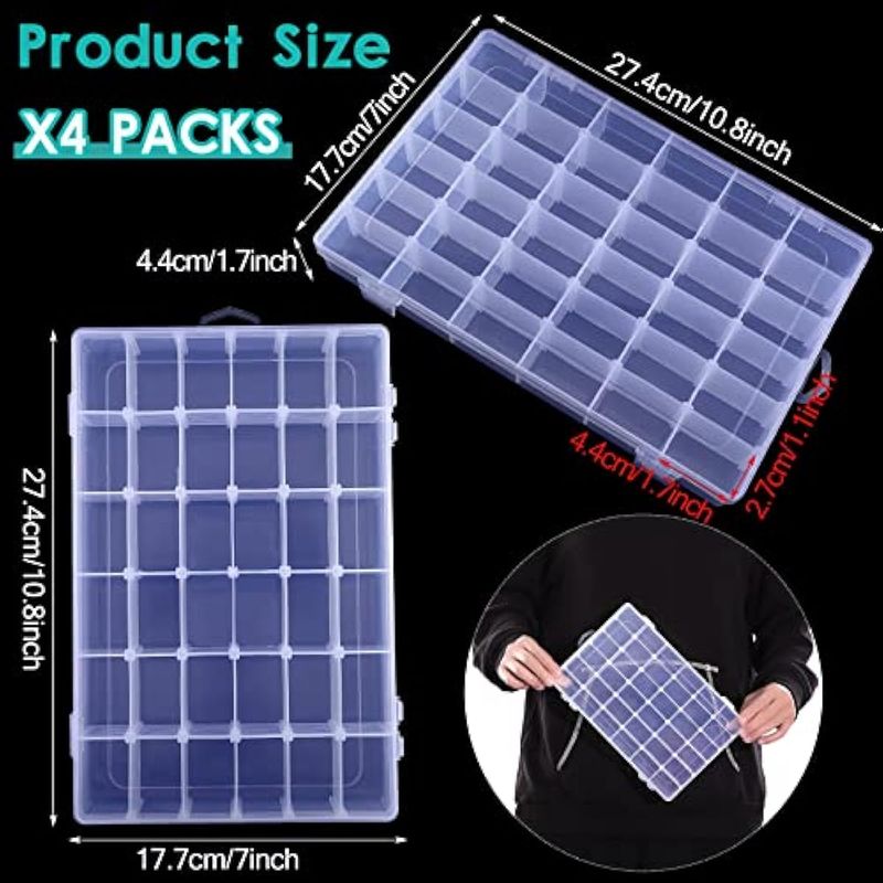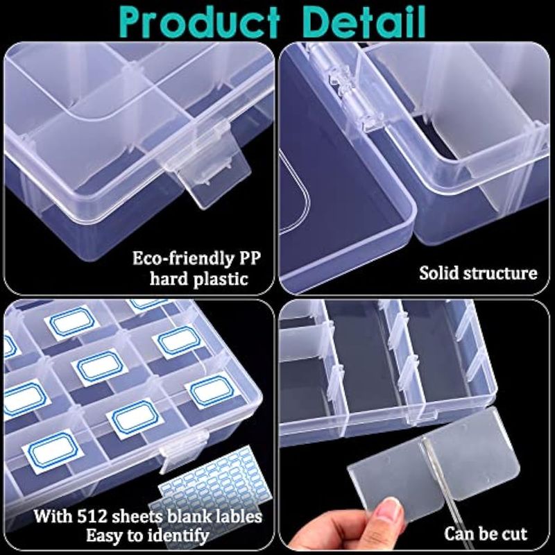 ????Gran capacidad: paquete de 4 cajas organizadoras de plástico transparente de 36 rejillas con 512 etiquetas adhesivas para marcar fácilmente cada rejilla mientras la usas. El tamaño de la caja es de 10.8 x 7 x 1.7 pulgadas, cada cuadrícula mide 1.7 x 1.1 x 1.7 pulgadas, suficiente para tu almacenamiento y uso.