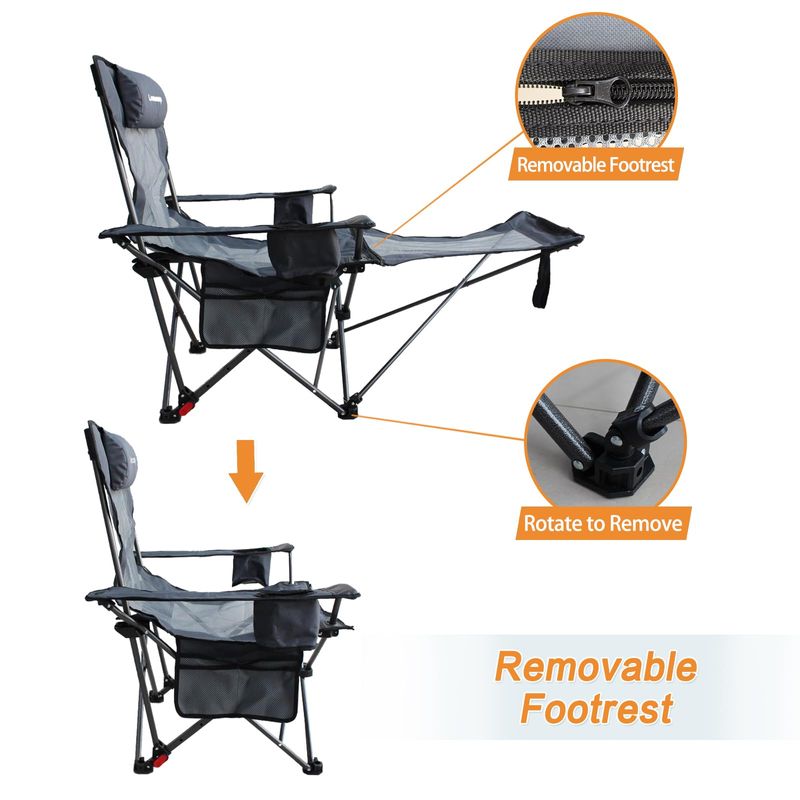 POEPORE Silla de camping reclinable con reposapiés extraíble con reposacabezas, cojín de algodón,