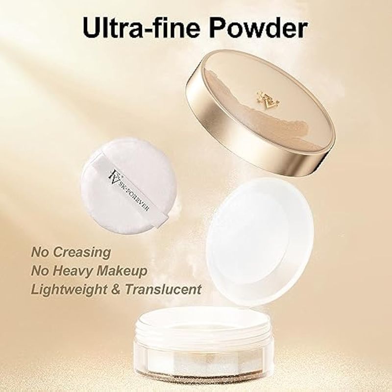Ligero y ultrafino: el polvo de acabado suelto es ultra fino sin arrugas. Además, el polvo de fijación impermeable y resistente al sudor minimiza la apariencia de poros y manchas y crea un aspecto transparente, ligero, borroso y de enfoque suave.