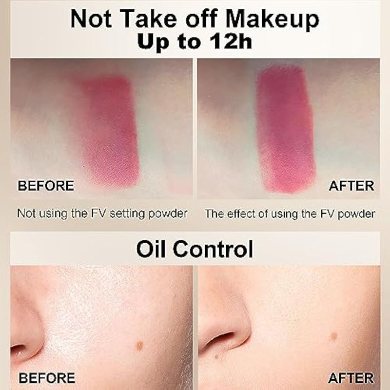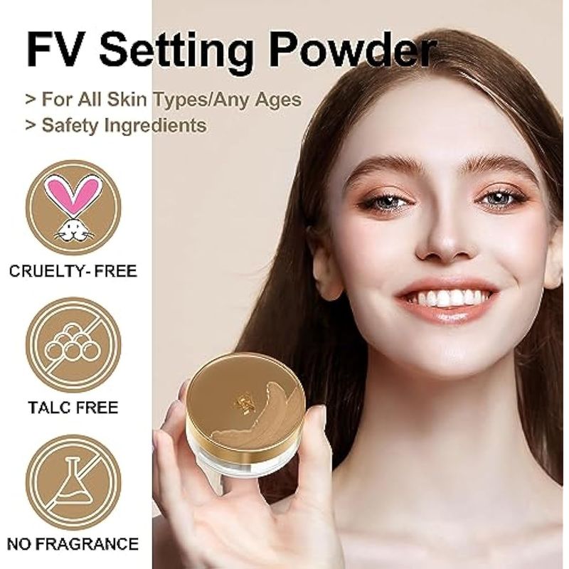 Adecuado para todo tipo de piel: el polvo de maquillaje mate FV es adecuado para todo tipo de piel, como grasa, seca, mixta o tipos de piel normal. Y el maquillaje en polvo de hornear se utiliza para todos los tonos de piel, como los tipos de piel clara, media o profunda.
