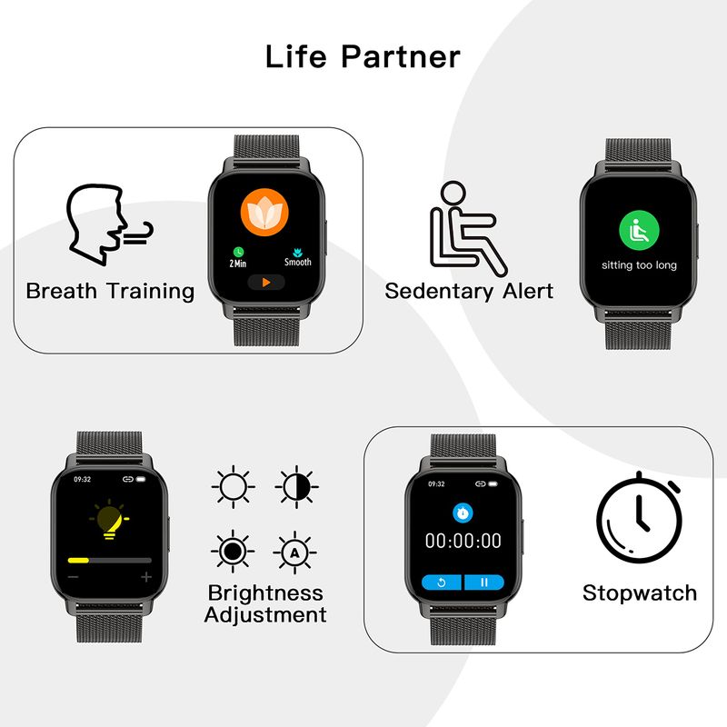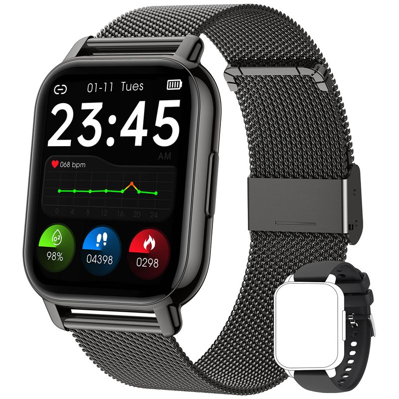 Popglory - Reloj inteligente de recepción de llamadas/dial de 1.85 pulgadas, rastreador de fitness