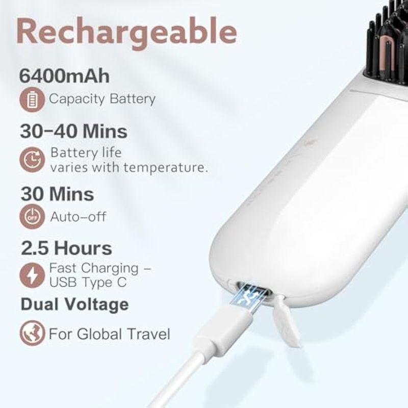 Porta - Cepillo alisador de pelo inalámbrico, [iones negativos de 656.2 ft], cepillo alisador de